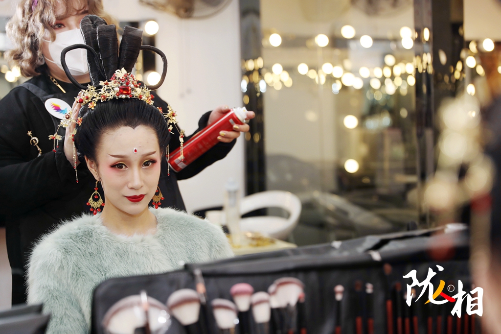 4月10日,陳婉琪做了三個(gè)多小時(shí)的造型,“因?yàn)槭且獏⒖级鼗捅诋嫷膬?nèi)容來(lái)做,所以不管是服飾還是妝容,都要一點(diǎn)點(diǎn)的調(diào)整。”
