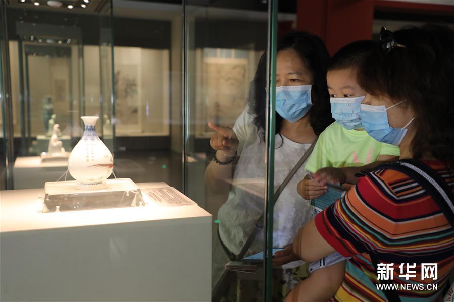 觀眾在天津博物館觀賞琺瑯彩玉壺春瓶(6月23日攝)。新華社記者 周潤(rùn)健 攝