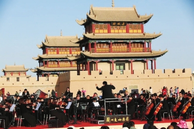 近日,大型交響樂《長(zhǎng)城》于中秋、國(guó)慶“雙節(jié)”黃金周在國(guó)家5A級(jí)景區(qū)嘉峪關(guān)關(guān)城激情上演,雄渾的交響曲不僅使得古老絲路精神再次煥發(fā)勃勃生機(jī),更用動(dòng)人的旋律再一次解讀了“一帶一路”倡議和國(guó)家向西開放戰(zhàn)略給甘肅帶來的重大機(jī)遇,闡釋了“交響絲路、如意甘肅”豐富而嶄新的意蘊(yùn)。