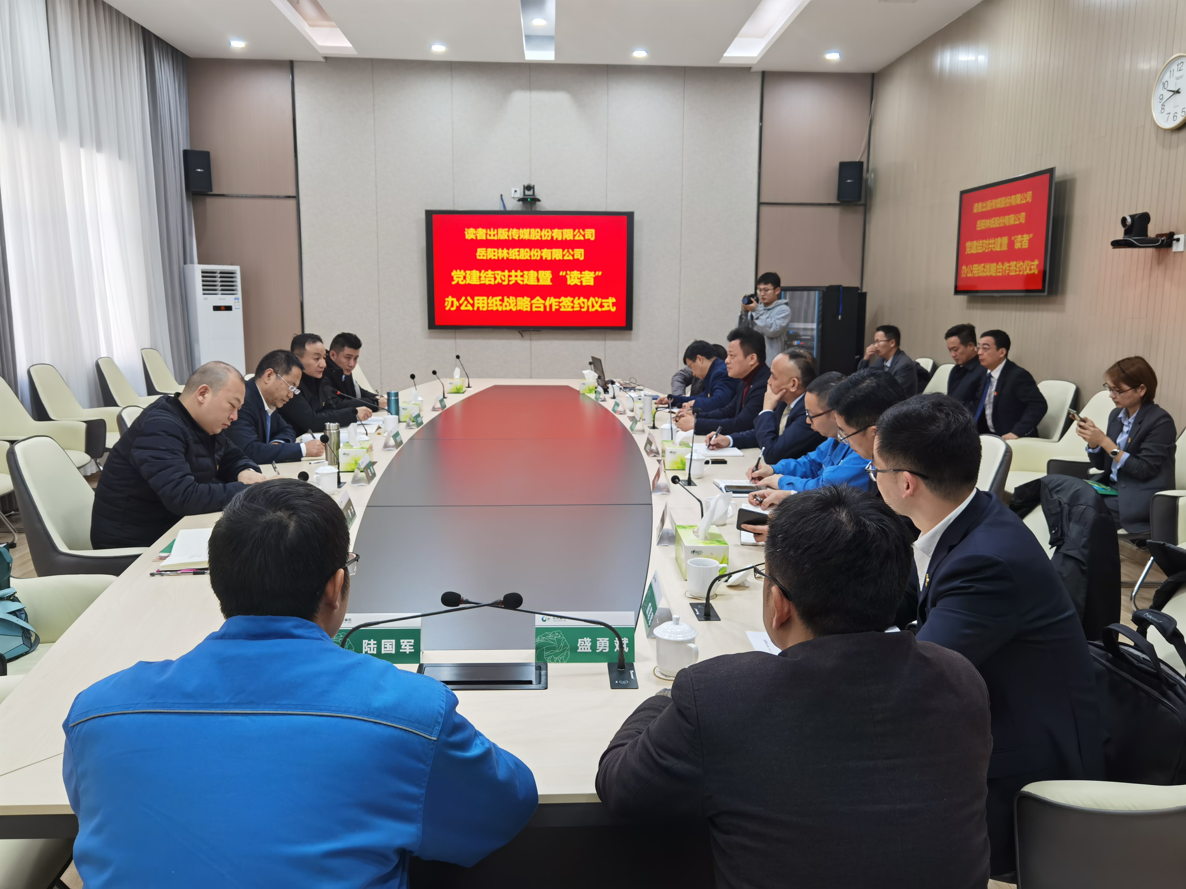參加簽約儀式的有:讀者出版?zhèn)髅焦煞萦邢薰军h委副書記、副總經(jīng)理李樹軍,甘肅教材中心總經(jīng)理、讀者文化傳播公司董事長(zhǎng)權(quán)雄偉,岳陽(yáng)林紙股份公司總經(jīng)理李戰(zhàn),岳陽(yáng)林紙股份公司副總經(jīng)理、岳陽(yáng)分公司總經(jīng)理趙慶義,岳陽(yáng)林紙?jiān)狸?yáng)分公司總經(jīng)理助理、文化紙事業(yè)部總經(jīng)理、9/10號(hào)機(jī)黨支部書記、生產(chǎn)線經(jīng)理蔣華林,岳陽(yáng)林紙銷售公司黨總支部書記、常務(wù)副總經(jīng)理張喜平,以及相關(guān)部門負(fù)責(zé)人。岳陽(yáng)林紙銷售公司黨總支宣傳委員、綜合管理部經(jīng)理戚軍軍主持簽約儀式。