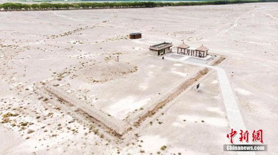 嘉峪關(guān)新城魏晉墓群六號墓是一座典型的三室墓,由前、中、后三個(gè)墓室組成。圖為7月中旬,六號墓航拍圖。高展 攝