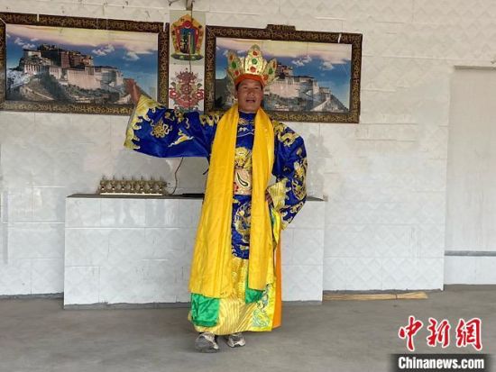 圖為外木村“南木特”藏戲演出隊(duì)成員出演智美更登?!∷巫雨俊z