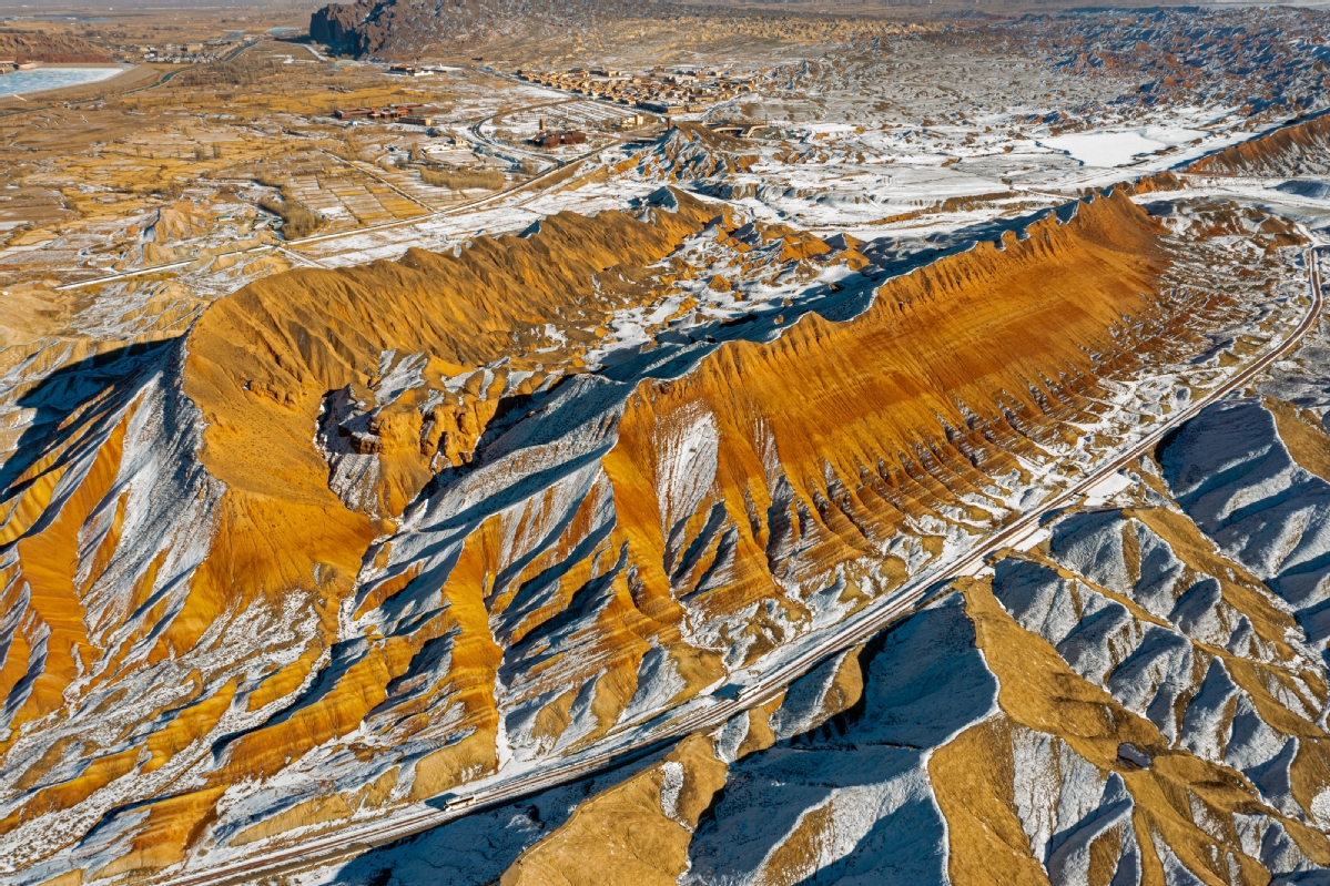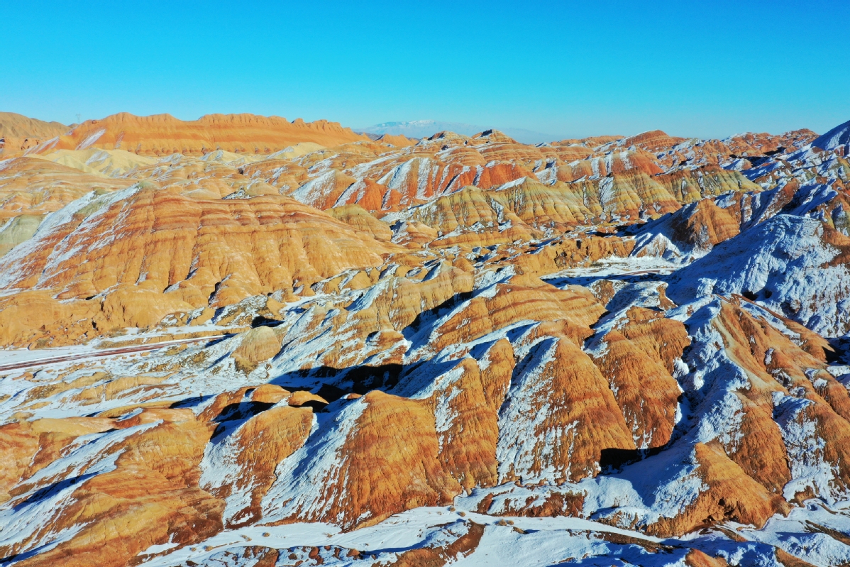 甘肅張掖:雪落七彩丹霞分外艷
