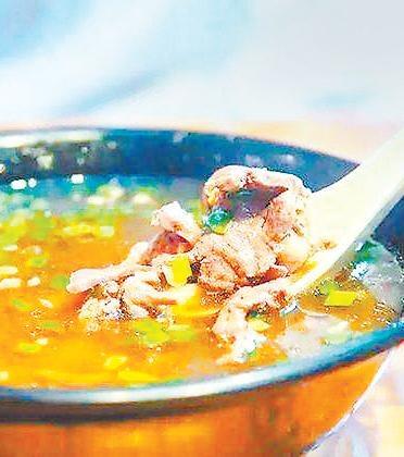 東門巷、喇家巷的牛雜割也上演著與肉酒一樣的故事,冬日里的牛雜割鋪子總是喧騰騰的,在雜割湯翻滾的撲鼻中,一碗又一碗的雜割端上桌了。蒜苗與芫荽沫作為菜頭,讓一碗牛雜割青綠且香味撲鼻,拿了筷子,手心里一抹,而后咽一下口水,吸溜一口湯,目光跟著筷子在碗里攪動,留意牛舌多了一塊還是蹄筋少了,先巡察一番,然后咬一口白餅,喝口湯,幾口之后才吃雜割。