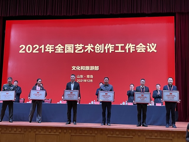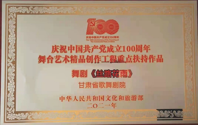 中國(guó)甘肅網(wǎng)12月19日訊 12月18日,文化和旅游部在山東省青島市召開(kāi)的“2021年全國(guó)藝術(shù)創(chuàng)作工作會(huì)議”上,發(fā)布了“慶祝中國(guó)共產(chǎn)黨成立100周年舞臺(tái)藝術(shù)精品創(chuàng)作工程”入選名單,頒發(fā)了“慶祝中國(guó)共產(chǎn)黨成立100周年舞臺(tái)藝術(shù)精品創(chuàng)作工程獎(jiǎng)牌”。甘肅省文化和旅游廳遴選推薦的舞劇《絲路花雨》《大夢(mèng)敦煌》《彩虹之路》、隴劇《官鵝情歌》、小品《你笑起來(lái)真好看》等5部舞臺(tái)藝術(shù)精品,經(jīng)文旅部評(píng)審正式入選“舞臺(tái)藝術(shù)精品創(chuàng)作工程重點(diǎn)扶持作品”。甘肅省歌舞劇院創(chuàng)排的舞劇《絲路花雨》作為12家“百年百部”工程受獎(jiǎng)單位在全國(guó)藝術(shù)創(chuàng)作工作會(huì)議上接受獎(jiǎng)牌和榮譽(yù)證書(shū),甘肅省文旅廳、山東省文旅廳等參會(huì)代表12家領(lǐng)獎(jiǎng)單位上臺(tái)領(lǐng)獎(jiǎng),充分展現(xiàn)了文旅部對(duì)甘肅省入選作品質(zhì)量及組織工作的高度肯定。