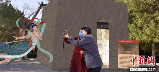 同時(shí),游客還能收獲與眾不同的“打卡照”,在景區(qū)與不同朝代的“飛天”進(jìn)行親密互動(dòng),在特殊的場(chǎng)景中還能與九色鹿、3D大佛等虛擬形象合影留念。