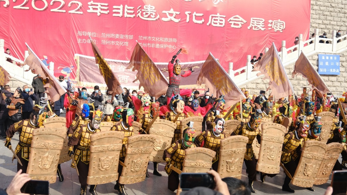 2月2日, 大年初二,“冬奧過(guò)大年·文化進(jìn)萬(wàn)家”蘭州市2022年非遺文化畝會(huì)展演活動(dòng)在甘肅省蘭州市城關(guān)區(qū)金城關(guān)舉行。