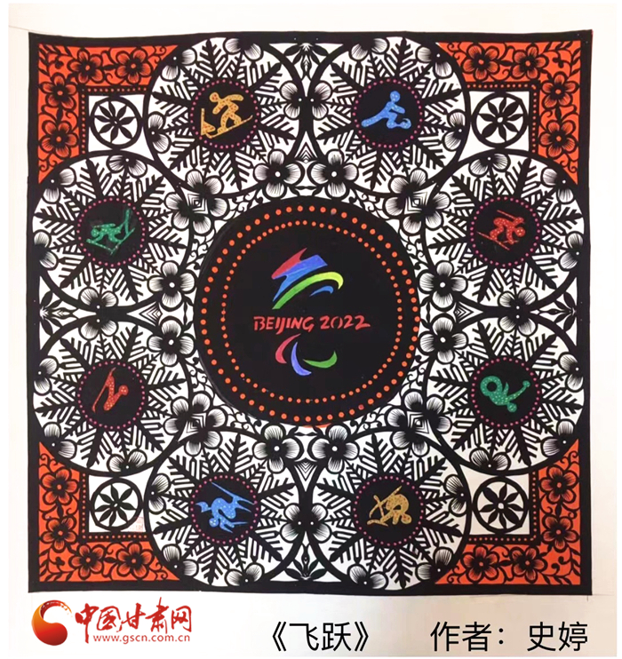 “剪紙是中國傳統(tǒng)文化,也是我的特長,所以我就用剪紙的形式創(chuàng)作了這兩幅《冬夢》《飛躍》”。時值冬奧會在北京盛大開幕,史婷以冬奧會和冬殘奧會的會微為主題,加上一些比賽項目的標志,創(chuàng)作了兩幅剪紙藝術(shù)作品。“我想通過作品為奧運健兒們加油助力,希望他們在比賽中能取得更好的成績。”她說。