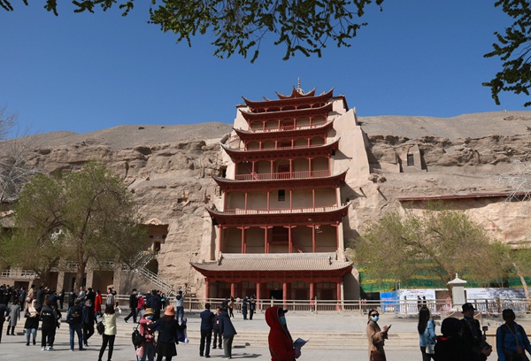 游客在世界文化遺產(chǎn)敦煌莫高窟游覽。張曉亮攝