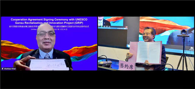 與創(chuàng)新項目與聯(lián)合國教科文組織技術(shù)援助合作協(xié)議簽約儀式,旨在運用甘肅文化和創(chuàng)意資源推進文化遺產(chǎn)保護傳承與創(chuàng)新發(fā)展。