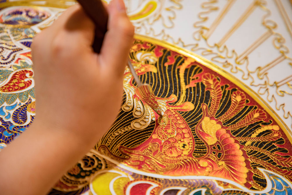 此后30多年,李海明不斷傳承創(chuàng)新,將排絲、壘絲、螺旋絲、柱狀絲等鑲嵌技法引入掐絲琺瑯藝術(shù),利用100多種基礎琺瑯釉料調(diào)制出4000多種過渡色及配色,攻克了琺瑯壁畫釉料脫落的難題,提升了琺瑯壁畫作品的藝術(shù)價值和收藏價值。截至目前,他共創(chuàng)作2000多幅掐絲琺瑯壁畫作品,先后30多次獲國家級和省級工藝美術(shù)類大賽金獎,部分作品被國家博物館收藏。