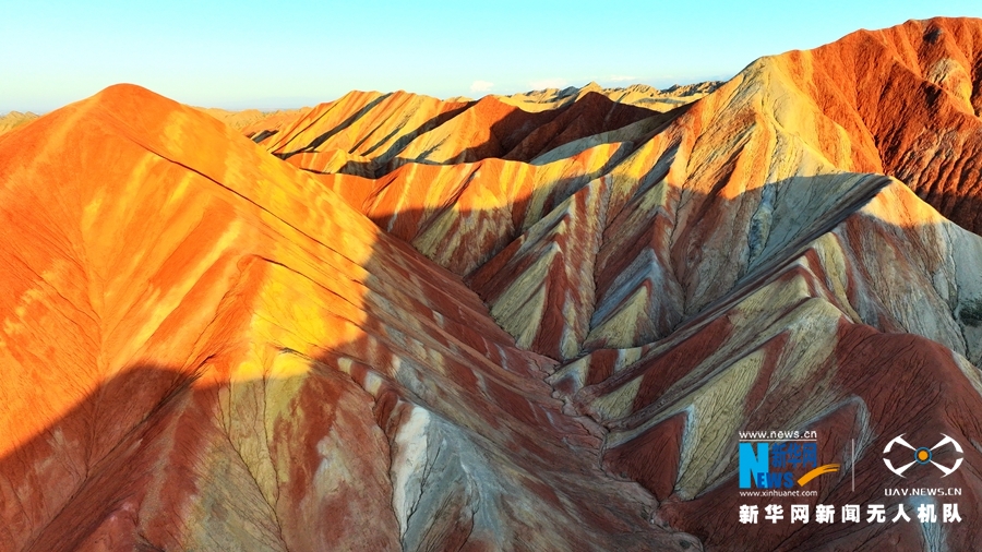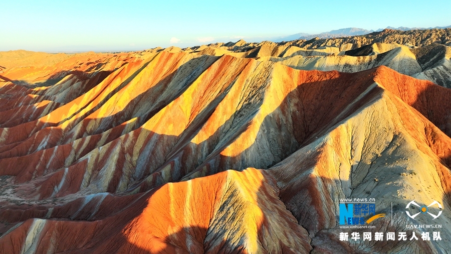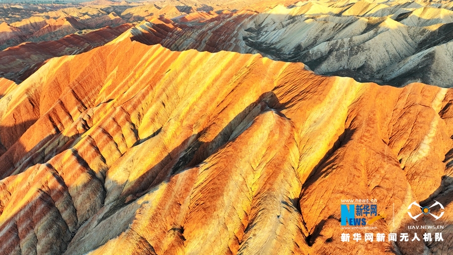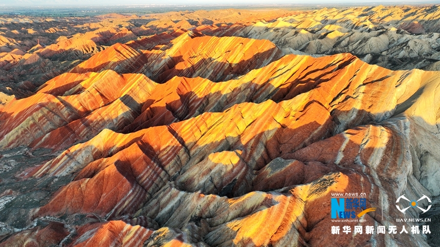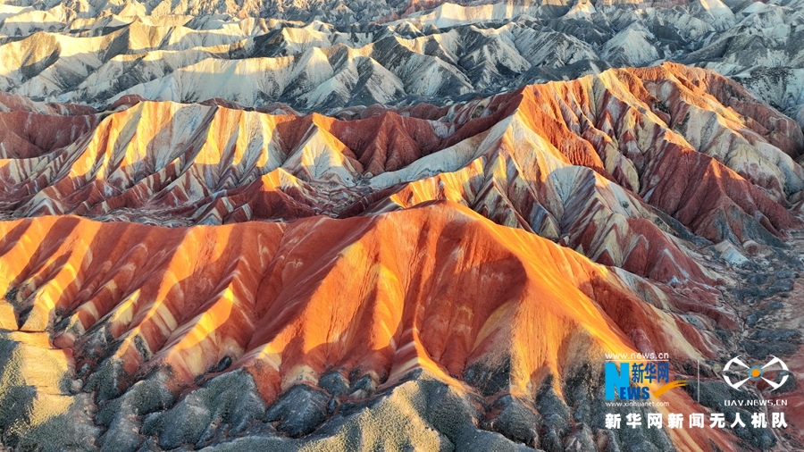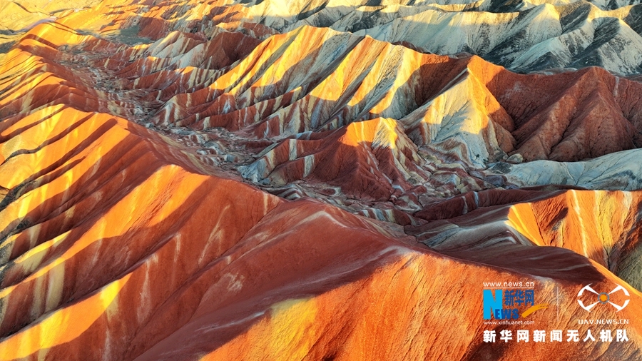 夏日傍晚,在夕陽的映照下,甘肅張掖七彩丹霞色彩艷麗、層理交錯(cuò),美不勝收。新華網(wǎng)發(fā)(成林 攝)