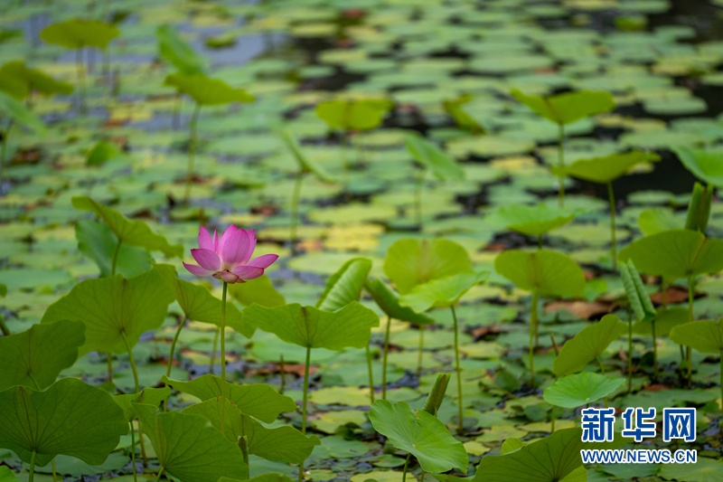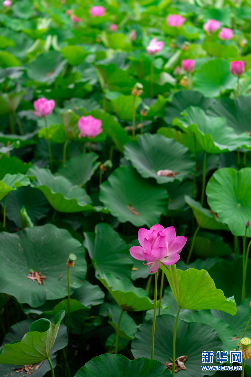 盛夏時(shí)節(jié),甘肅省隴南市成縣裴公湖里的荷花競(jìng)相綻放,在炎炎夏日中帶來(lái)一絲清涼。新華網(wǎng)發(fā)(陳爭(zhēng)強(qiáng) 攝)