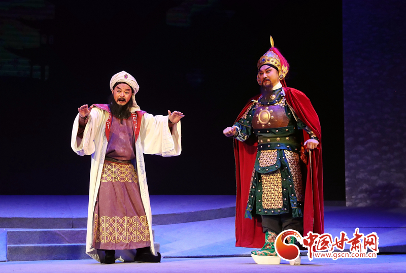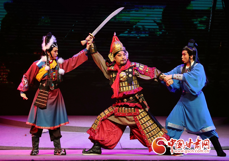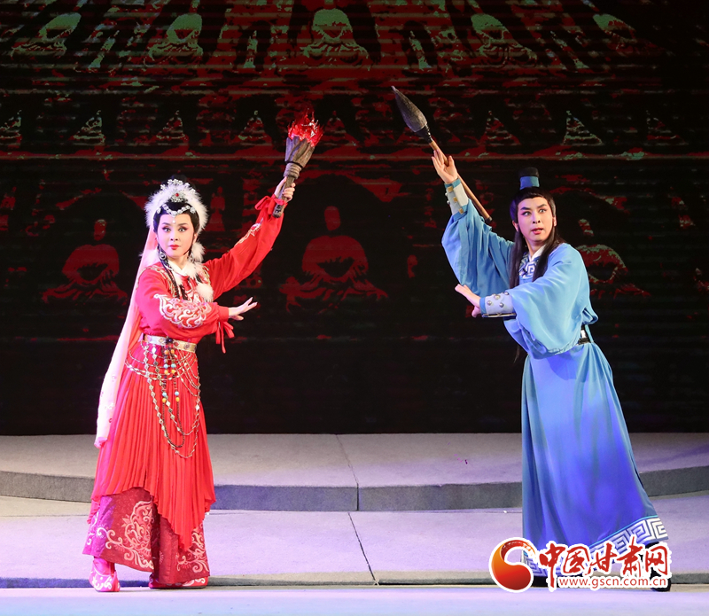 隴劇《敦煌》以回鶻族公主格麗莎的命運軌跡為結(jié)構(gòu)框架和發(fā)展脈絡(luò),描繪了一幅炎黃子孫在血與火的洗禮中,保護(hù)中華民族文化的宏偉畫卷,充分詮釋了敦煌文化“美人之美”“美美與共”的開放胸襟,“止戈為武”“協(xié)和萬邦”的和平思想,“和為貴”“和而不同”的東方智慧以及“自強(qiáng)不息”的奮斗精神、“舍生取義”犧牲精神。