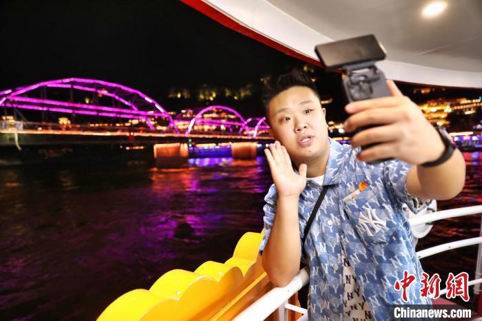 7月16日,“絲路風(fēng)采 如意甘肅”海峽兩岸記者聯(lián)合采訪活動(dòng)在甘肅蘭州啟動(dòng)。圖為臺(tái)灣自媒體人林惟綱在“黃河第一橋”——中山橋下拍攝短視頻?!≈行律缬浾?nbsp;李雪峰 攝