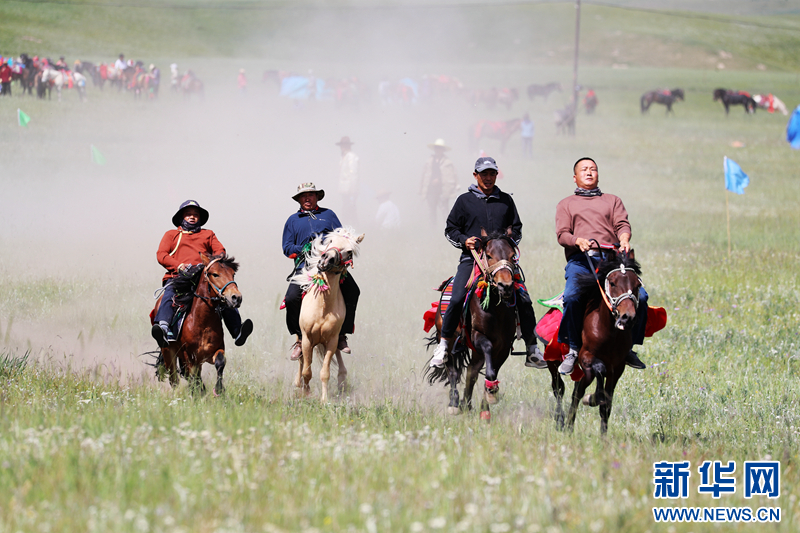7月24日,甘肅省張掖市肅南裕固族自治縣康樂(lè)鎮(zhèn)“策馬奔騰情系草原”主題賽馬大會(huì)在康樂(lè)草原開(kāi)賽,此次賽馬大會(huì)設(shè)定有大馬賽、小馬賽、圓口賽、對(duì)牙賽和女子賽五種項(xiàng)目。70多匹駿馬馳騁草原,演繹草原上的“速度”與“激情”。新華網(wǎng)發(fā)(成林 攝)