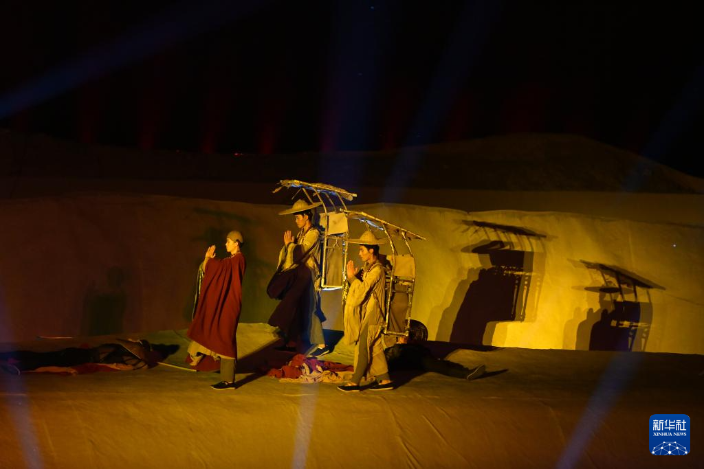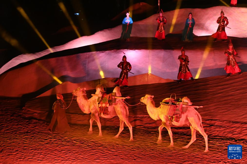今年以來,脫胎于敦煌文化的洞窟沉浸式體驗劇《樂動敦煌》、室內(nèi)情景體驗劇《又見敦煌》、沙漠實景演出《敦煌盛典》和中國殘疾人藝術(shù)團情景音畫劇《千手千眼》四場劇目在絲路名城甘肅敦煌同步上演,劇目將敦煌歷史底蘊、服飾文化、樂舞文化等生動融合,為游客呈現(xiàn)出精彩絕倫的敦煌文化視覺盛宴,深受中外游客喜愛。截至8月10日,四大劇目今年已累計演出1175場次,觀看游客突破66萬人次。其中,《敦煌盛典》以敦煌鳴沙山月牙泉為背景,將沙漠景觀與現(xiàn)代舞美結(jié)合,將墻體燈光融入實景演出,講述了一段發(fā)生在古絲綢之路重鎮(zhèn)敦煌的愛情故事,展示了敦煌的歷史文化及人文風(fēng)貌。