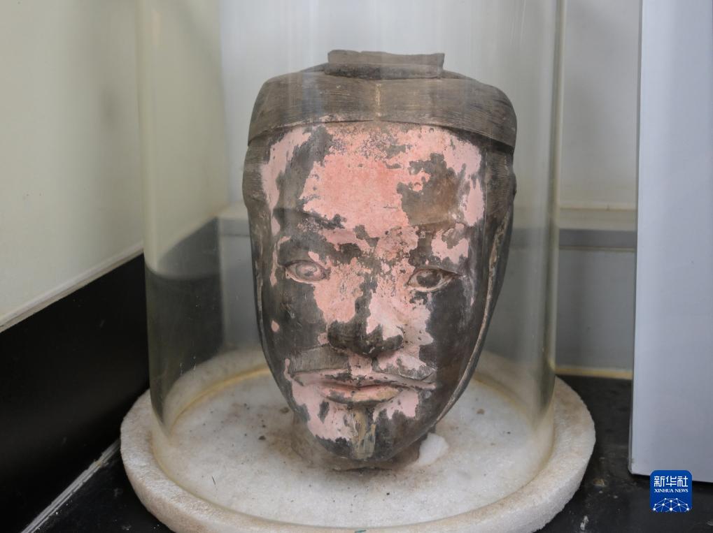 這是秦俑臉部彩繪還原修復(fù)后的樣貌(8月23日攝)。