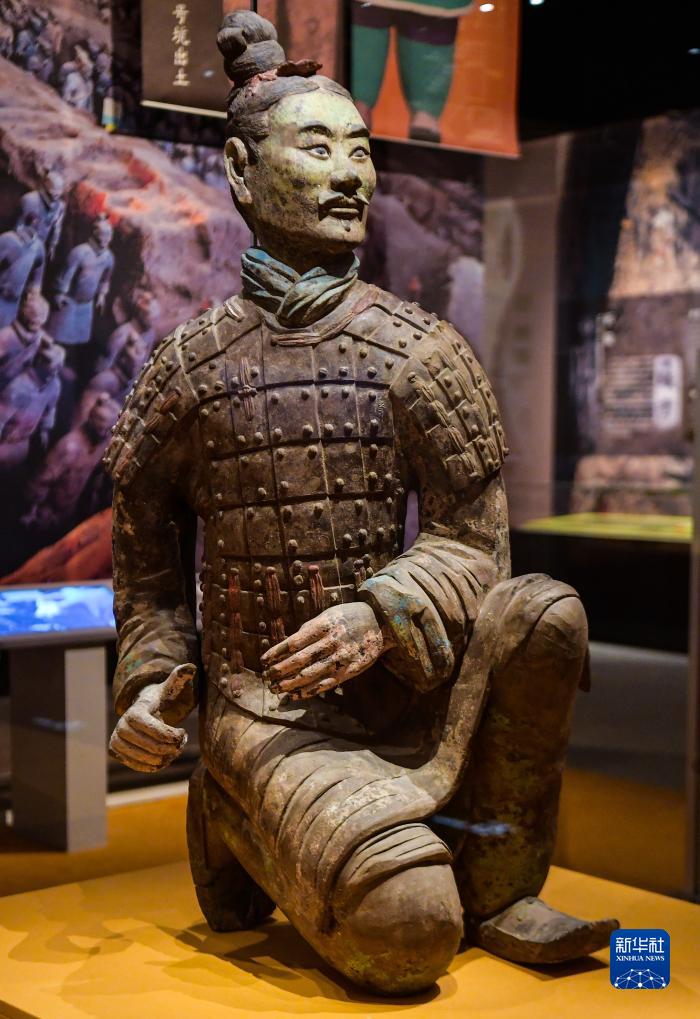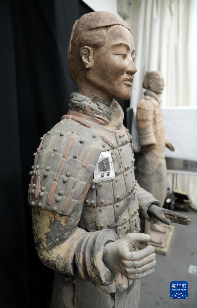 這是秦俑身上彩繪還原修復(fù)后的樣貌(8月23日攝)。