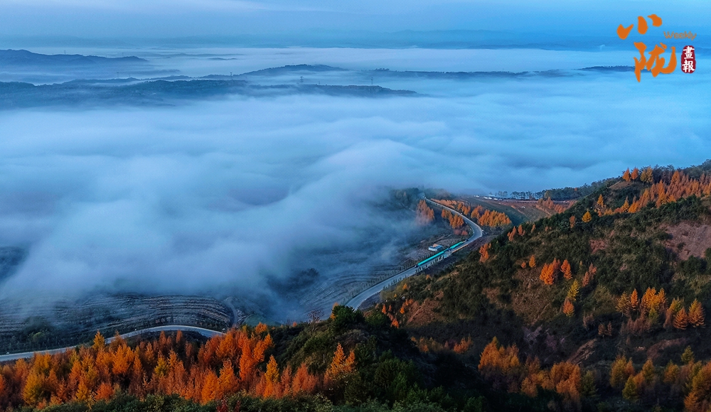一場秋雨過后,境內(nèi)云華山呈現(xiàn)出一瀑萬頃、白浪翻滾的云海景象。