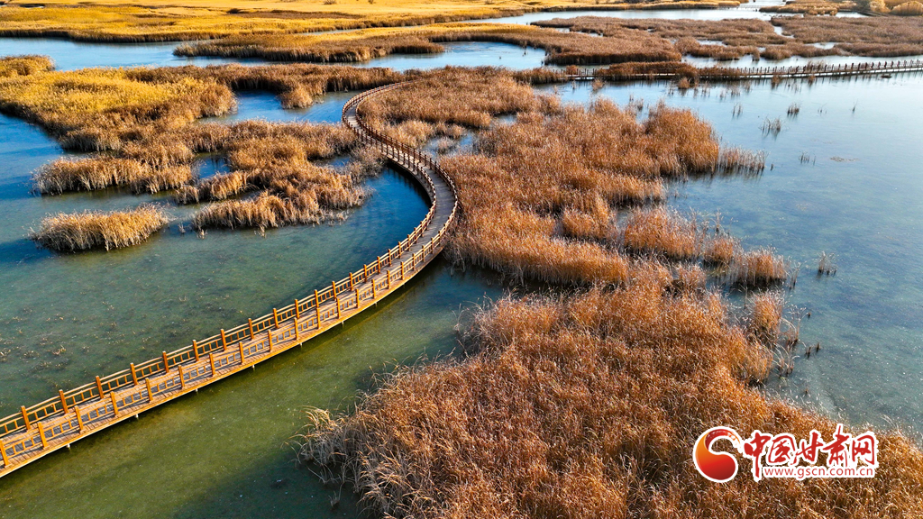 初冬時(shí)節(jié),張掖黑河濕地國家級自然保護(hù)區(qū)的蘆葦、蒲草等植物在秋風(fēng)、冬霜的吹拂下都變成了金黃色,密密的蘆花舞動(dòng)著裊娜的身姿,倩影婆娑,蘆葦叢里鳥鳴啾啾,整個(gè)濕地成為了一片金色的童話世界,讓人產(chǎn)生無限遐思。