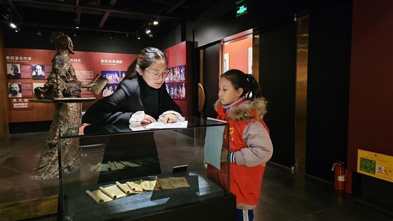 11月30日下午,中山小學的同學們來到秦腔博物館開展“小小講解員展廳實踐課程活動”。“小小講解員”們各顯神通,運用自己在培訓(xùn)課程中學習到的知識技能,聲情并茂地向老師、同學們講解了秦腔的發(fā)展歷程和六大具有影響力的故事。實踐課程既提高了孩子們的語言表達能力又鍛煉了膽量,體驗到了成為“小小講解員”的樂趣。
