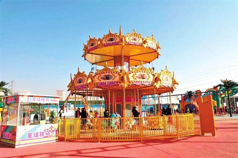 天鵝過山車、童話轉(zhuǎn)馬、瘋狂海盜船……快樂從這里起航。2023年12月30日,蘭州冬季旅游嘉年華啟幕暨蘭州歡樂園揭牌儀式舉行。此次蘭州冬季旅游嘉年華啟幕暨蘭州歡樂園揭牌,是西固區(qū)打造“黃河文化”旅游帶的務(wù)實(shí)之舉,是河口古鎮(zhèn)、天鵝灘景區(qū)等地方旅游產(chǎn)業(yè)與“冰雪經(jīng)濟(jì)”聯(lián)動發(fā)展的重要路徑。蘭州歡樂園的建成運(yùn)營,增添了西固網(wǎng)紅打卡名片,填補(bǔ)了大型游樂類旅游項(xiàng)目的空白,豐富了西固旅游的功能體系。