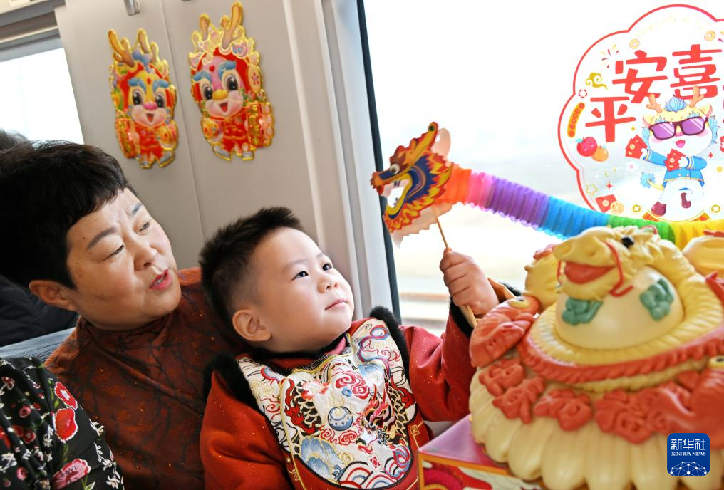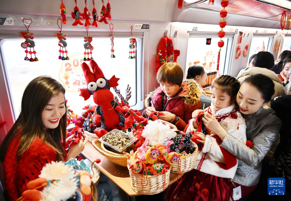 當(dāng)日,中國(guó)鐵路濟(jì)南局集團(tuán)有限公司青島客運(yùn)段在齊魯環(huán)游線G6955次列車上開(kāi)展“年俗非遺進(jìn)高鐵”活動(dòng),讓旅客在旅途中感受傳統(tǒng)文化的魅力,營(yíng)造濃郁的節(jié)日氛圍。