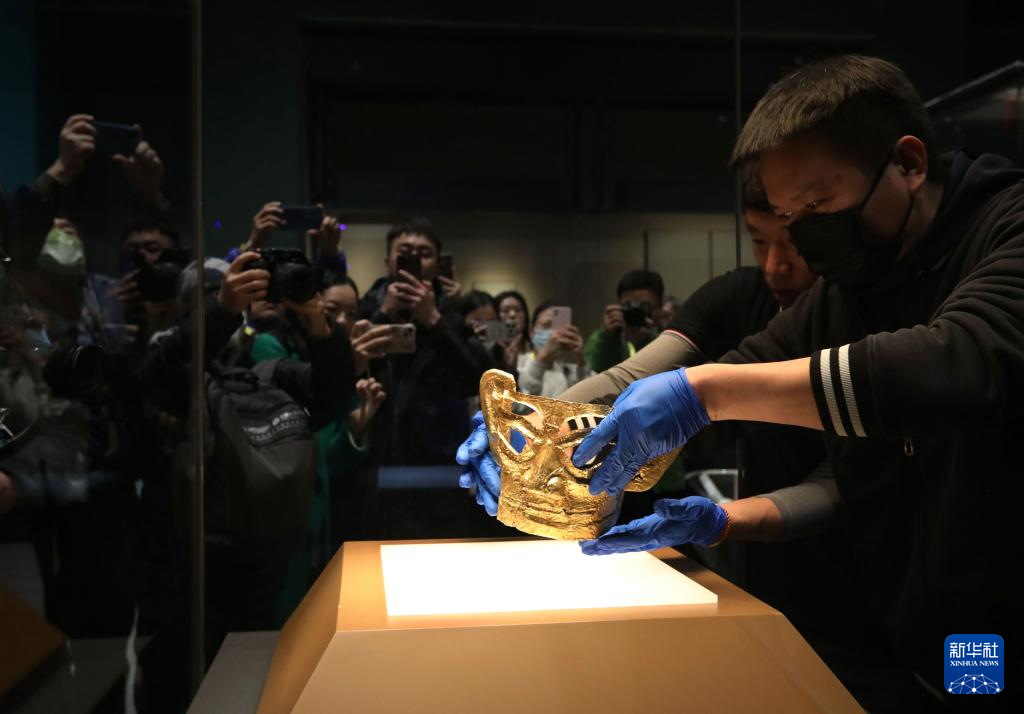 當(dāng)日,四川廣漢三星堆遺址出土的珍貴文物——金面具和豎披發(fā)青銅人像在上海博物館東館特展廳內(nèi)開箱,移入展柜。坐落于黃浦江東岸的上海博物館東館將于2月2日啟用,開幕展覽“星耀中國:三星堆·金沙古蜀文明展”將對公眾開放。