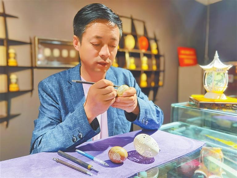 蛋雕改變了楊星國的生活,也改變了他對人生的追求。源于蛋雕藝術品呈現(xiàn)的精妙,慕名拜訪他的人很多,去他的工作室參觀或?qū)W習,并向他請教問題時,他都會細致、耐心地講解或演示,有時候還會讓游客自己上手體驗。