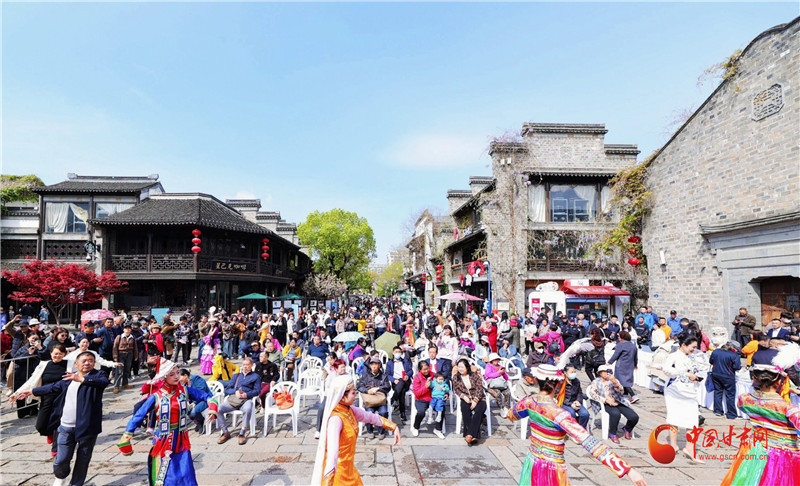 “快閃+路演”主題宣傳由甘肅民族風舞蹈串燒的快閃活動拉開序幕,西北特色民族舞蹈與江南風情老街相遇,記憶里的南方與北方相融,這樣一幅情景相依又充滿矛盾的特殊“舞臺畫卷”,迅速吸引了景區(qū)大批游客駐足觀賞。