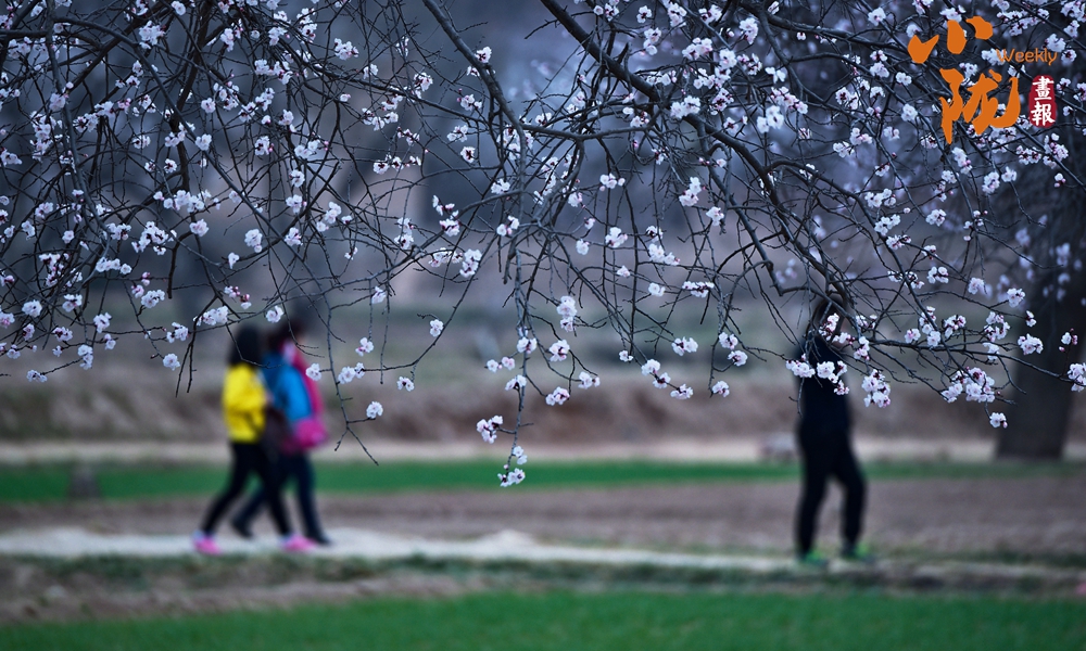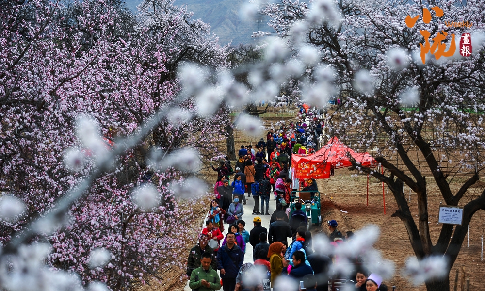 遠遠望去,到處是枝節(jié)橫生的杏樹,處處是農(nóng)家小舍,隱藏其中,人在花中,花在眼前。前來賞花的游客蜂擁而至,在杏園里駐足拍照,流連忘返。