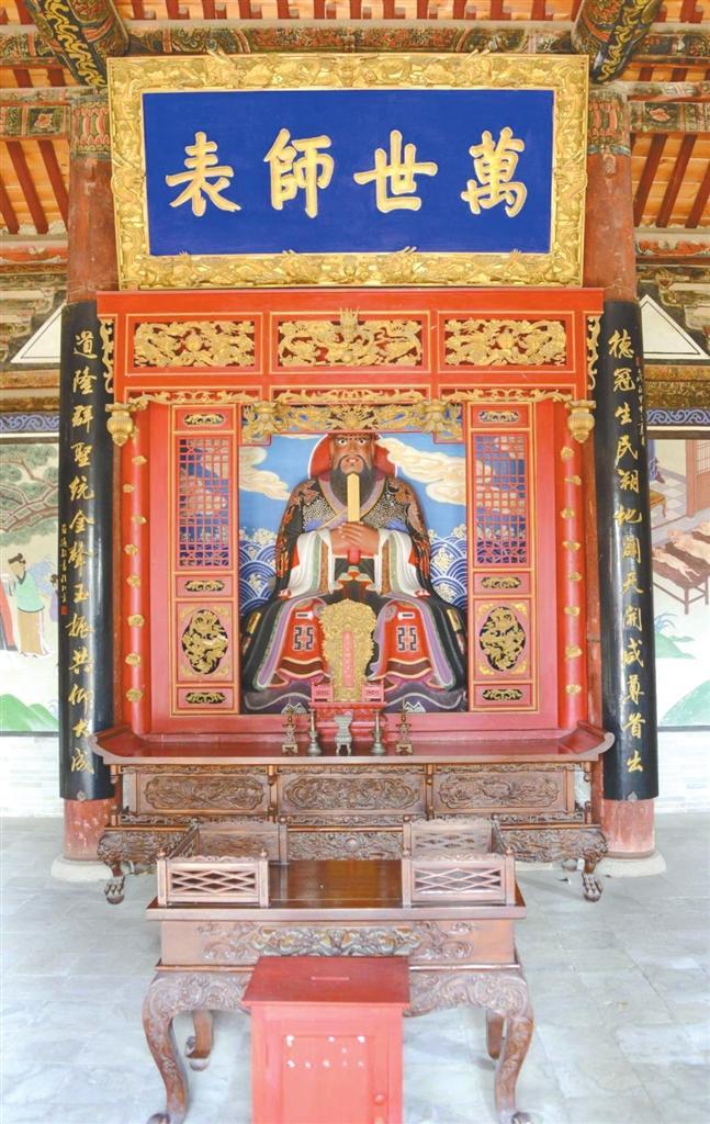 在秦安文廟塑有孔子塑像,他頭戴十二旒冠冕,身穿十二章王服,手捧鎮(zhèn)圭,儼然一副古代帝王相,這也反映了世人對(duì)孔子的極大尊崇。