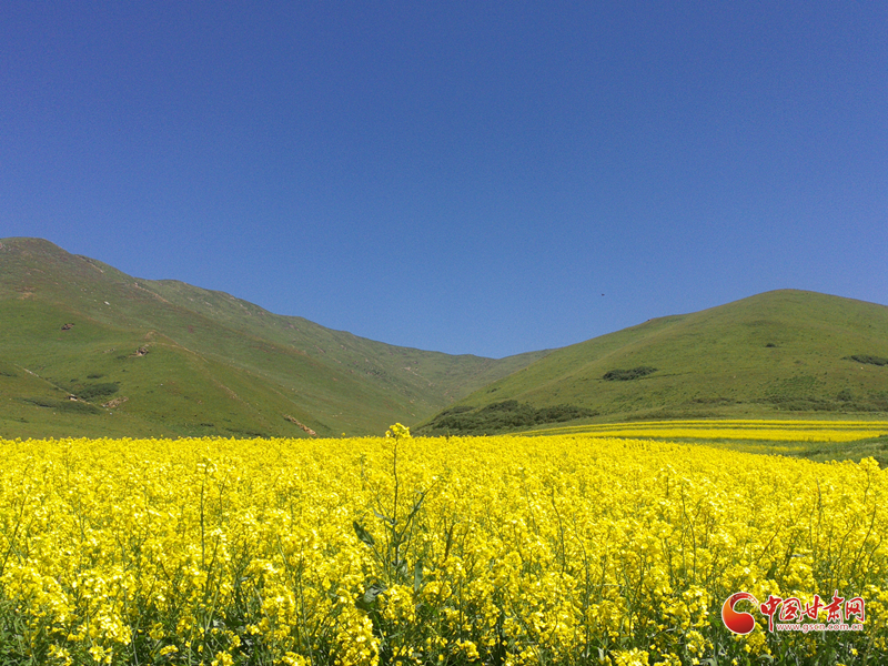 大山深處,秋風(fēng)嬉戲,藍(lán)天澄碧,大地金黃,白云悠然。蜂鳴,蝶舞,花香混合著泥土的芬芳,天地猶如一幅散著金光的風(fēng)景畫,渾然一體,如夢似幻。赤腳踩在綠油油的嫩草上,癢癢的,柔柔的,酥酥的。如母親的懷抱,舒適而安寧?;ê8呛⒆觽兊奶焯?,在里面打滾,摔跤,捉迷藏……揮灑無邪的童真。這時,或在花間嬉戲,或在花徑漫步,或在山野奔跑,或干脆在觸手可及的藍(lán)天白云下,枕著花香,靜靜一眠,把自己放逐在原野上,身心兩忘,回歸一個沒有謊言的世界。安靜,正如無邊無際的虛空;澄澈,又像一望無垠的凈土。清新的空氣,寂靜的原野,一切都是那么凈,靜。一切都融入自然,回歸純真。圣潔,澄凈,忘世,忘機,忘我,又那么浪漫。油菜開始開花。一開始是綠葉叢中一點黃,就好像是綠色的海洋里揚著黃色的一桅風(fēng)帆。接著是倆桅三桅……有一天你會發(fā)現(xiàn)綠色的海洋消失了,取而代之的是一片金黃色的閃著耀眼光芒的海平面。微風(fēng)過處,黃色的波濤此起彼伏,后浪推著前浪。有蜜蜂在花間穿梭,時而飛起,時而停在花蕊中辛勤地采著花粉,工作間隙還不忘嗡嗡地哼著歌。蝶兒翩翩飛舞在花海,兒童急急追蝴蝶。好一幅“兒童急走追黃蝶,飛入菜花無處尋”的畫面。白色蝶兒猶如黃色海面上飄著的白云,黃色蝶兒歇息在花的枝頭,你分不清是蝶兒變成了花還是花變成了蝶兒。山區(qū)的油菜花和川區(qū)的油菜花又有著迥然不同的風(fēng)采。