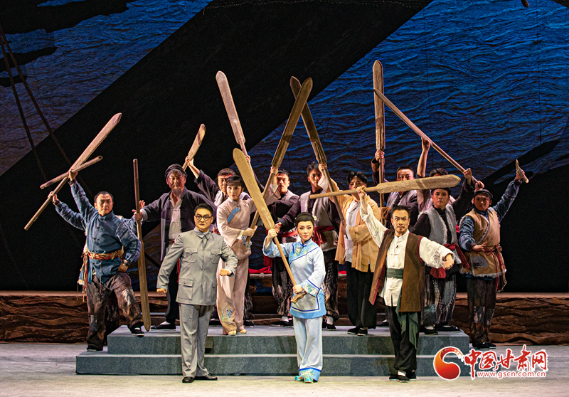 隴劇《大河?xùn)|流》于19日晚在甘肅黃河劇院成功首演。該劇以20世紀(jì)30年代末抗戰(zhàn)為背景,運(yùn)用具有地方特色的隴劇形式,生動(dòng)地描繪了大西北黃河邊的一群筏客子在國(guó)家危難之際,如何放下個(gè)人恩怨,團(tuán)結(jié)起來支援抗戰(zhàn),組成水上大型運(yùn)輸隊(duì),將大量物資安全送達(dá)抗戰(zhàn)前線,創(chuàng)造了“羊皮筏子賽軍艦”的傳奇故事。(甘肅省隴劇院供圖)