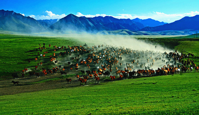 古往今來,文韻流長。山丹,從遠(yuǎn)古走來,禹導(dǎo)弱水傳頌至今,四壩文化彰顯了距今約4000年的歷史厚重。蒼茫祁連,水草豐茂,駿馬奔騰,牛羊成群,烏孫、月氏、匈奴,民族交融,眾多馬背民族在這里形成了樂園,繁衍生息,牧馬筑夢,悠然自得。歷經(jīng)兩千多年部族紛爭、朝代興衰更迭,形成了獨特豐厚的歷史文化,積淀了蘊味深遠(yuǎn)的地域個性。人們?yōu)闋帄Z這片風(fēng)光旖旎、人杰地靈、物華天寶、活力四射的熱土,在戰(zhàn)爭與和平,文明與血腥之間發(fā)生過無數(shù)生與死的故事,血與火的較量。山丹,從漢唐走來,驃騎將軍霍去病越焉支山抗擊匈奴,橫掃千軍,封狼居胥,日月彪炳;漢武帝在這里建立馬場,培育神駒寶驥,馳騁沙場,保家衛(wèi)國;王維、李白、岑參、韋應(yīng)物等文人墨客,抒懷寫意,留下了一批膾炙人口的華章。大漢雄風(fēng),盛唐遺韻在這里完美綻放;宋詞元曲,明清風(fēng)雅在這里渲染成一幅多彩的畫卷。時過境遷,物是人非,歷史在這里留下了濃墨重彩。