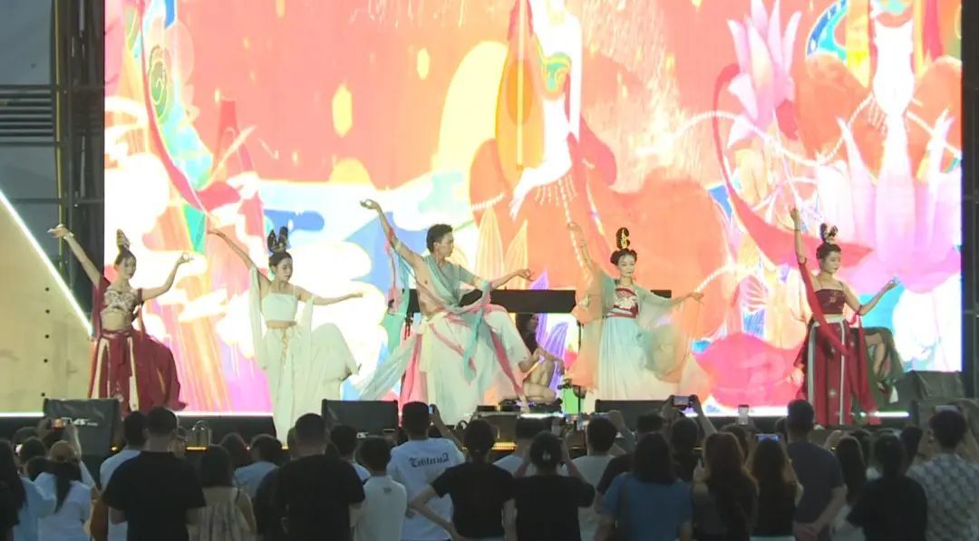 本次電音節(jié)以古老的“絲綢之路”為靈感源泉,巧妙融合了敦煌獨(dú)特的文化藝術(shù)和現(xiàn)代音樂元素?;顒蝇F(xiàn)場,觀眾沉浸在五彩斑斕的燈光秀和震撼人心的音響效果中,還能親身參與繪制飛天圖案、體驗(yàn)傳統(tǒng)樂器演奏,深度感受敦煌的文化藝術(shù)魅力。