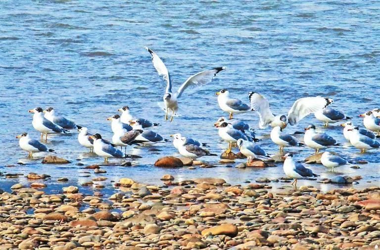 黃河蘭州段成群結(jié)隊的漁鷗在水面游弋。田蹊