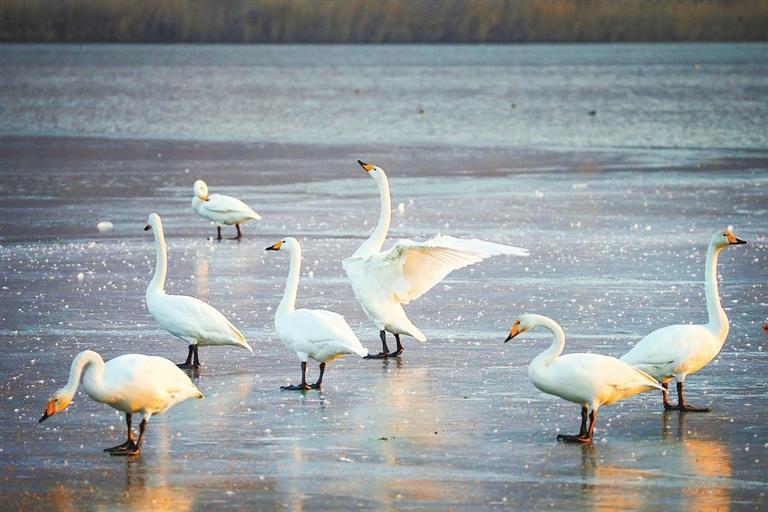蘭州西固區(qū)達川鎮(zhèn)境內(nèi)三河口的天鵝。丁凱