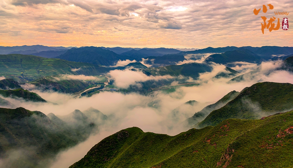 雨后放晴,山谷中的霧氣匯集升騰,化作云海環(huán)繞山峰,光線柔和空氣清涼,放眼望去,白云、青山、洮河、云海構成唯美畫卷。