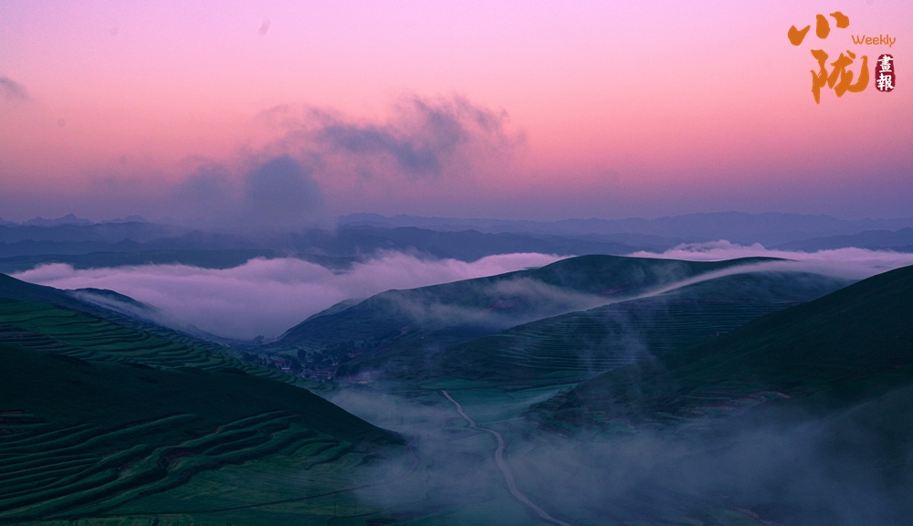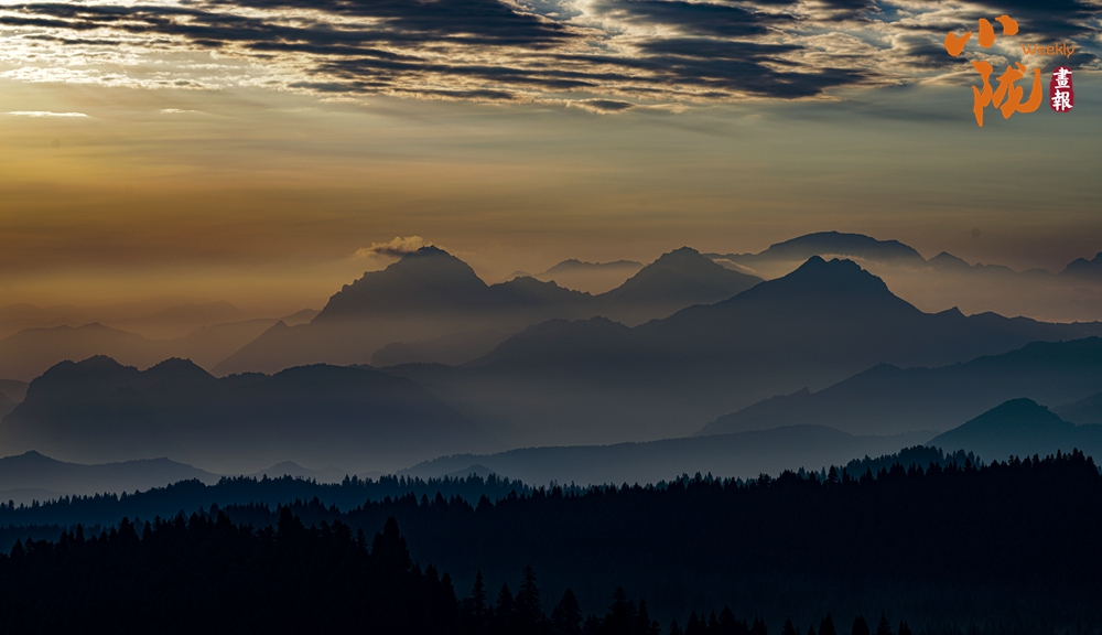 傍晚時分,天空變得絢爛多彩,晚霞映照白霧,起伏著山巒,坡地和浪漫;幾處白墻黛瓦的民居,升起炊香,滿目清爽之氣彌漫,用詩意繪就生態(tài)家園。