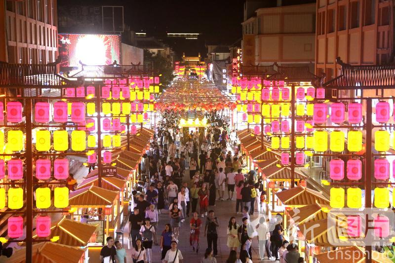 2024年8月17日,游客在甘肅省敦煌夜市游覽。進(jìn)入暑期以來(lái),被譽(yù)為敦煌“夜景圖”的敦煌夜市日均客流量達(dá)3萬(wàn)人次以上,游客在這里賞景游覽休閑,品嘗地方名優(yōu)小吃,選購(gòu)敦煌特色文創(chuàng)產(chǎn)品,感受敦煌文化魅力,夜經(jīng)濟(jì)活力四射。中新社發(fā) 張曉亮 攝