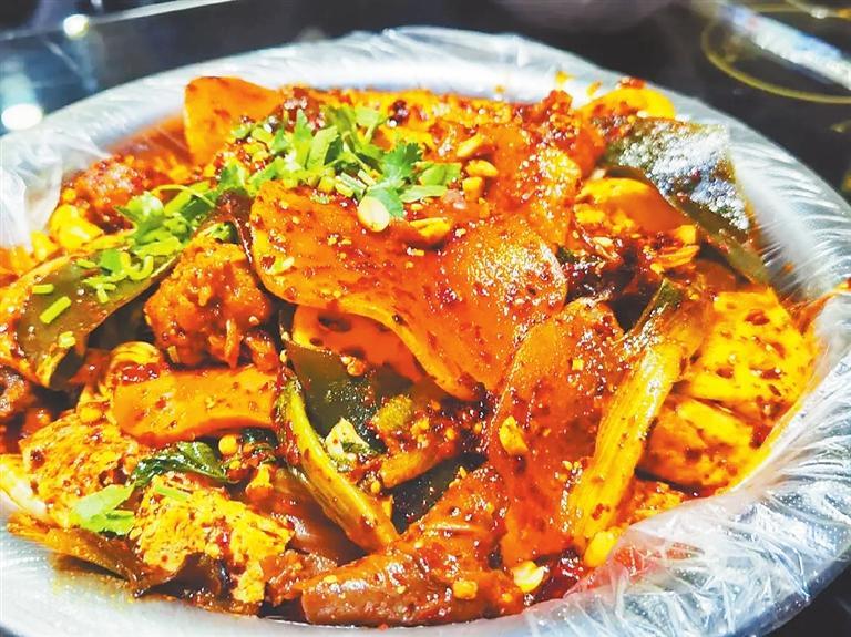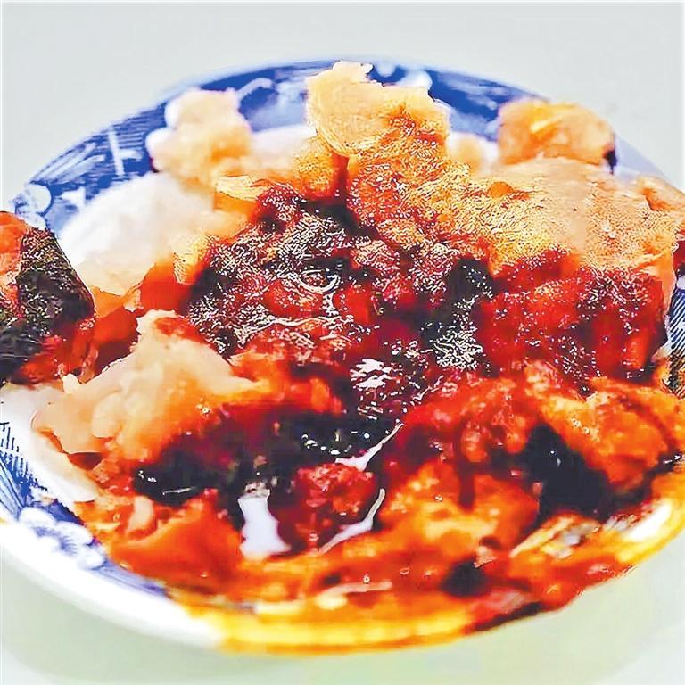 “呱呱”需要在一片赤紅色的辣中翻翻撿撿,尋尋覓覓,尋到一塊兒裹滿辣椒且大小適中的碎塊,香氣就這么吃到肚子里了。