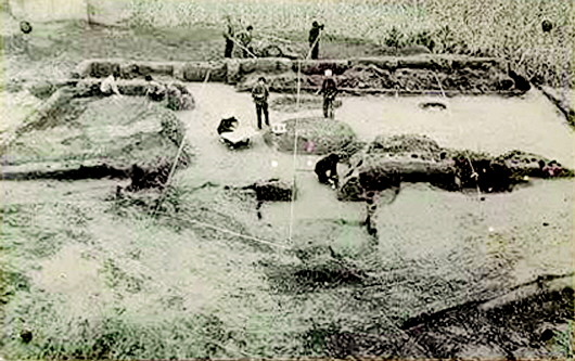 秦安大地灣遺址是1958年發(fā)現(xiàn)的,當(dāng)時(shí)正值全國文物大普查,隨即被列為省級(jí)文物保護(hù)單位。1978年開始發(fā)掘,總面積110萬平方米,現(xiàn)揭露面積13700平方米,出土房址238座、灰坑357個(gè),墓葬79座、窯38座、灶臺(tái)106座,各種骨、石、蚌、陶器、裝飾器和生活器物共計(jì)8034件。特別是房屋建筑遺址,不僅規(guī)模宏偉,而且形制復(fù)雜。在發(fā)掘中就被公布為全國重點(diǎn)文物保護(hù)單位。