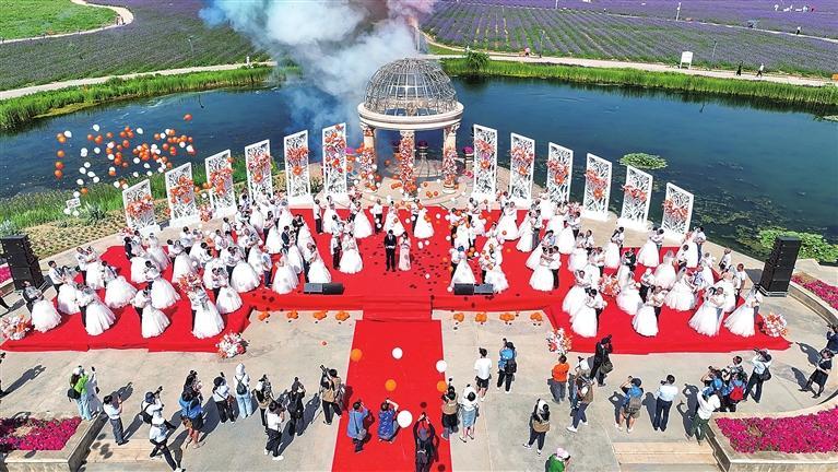 陽光、微風、花海……夏季的金昌紫金花海充滿浪漫氣息,溫柔而熱烈。6月29日上午,連續(xù)舉辦七屆的“遇見愛,遇見你”薰衣草集體婚禮如約開場。近年來,一場場薰衣草之約集體婚禮引領(lǐng)金昌婚慶經(jīng)濟進入一個快速發(fā)展階段,集體婚禮也成為金昌旅游對外宣傳推介的一張亮麗名片。
