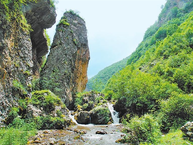 雙石門獨(dú)特的景觀,與它所屬的山脈是分不開的。在雙石門峽谷深處,群峰相連,最高峰是被譽(yù)為“撐天銀碑”的露骨山,主峰海拔3941米,是臨近數(shù)縣海拔最高的山峰,同時(shí)也是漳縣、渭源、卓尼三縣的交界處。