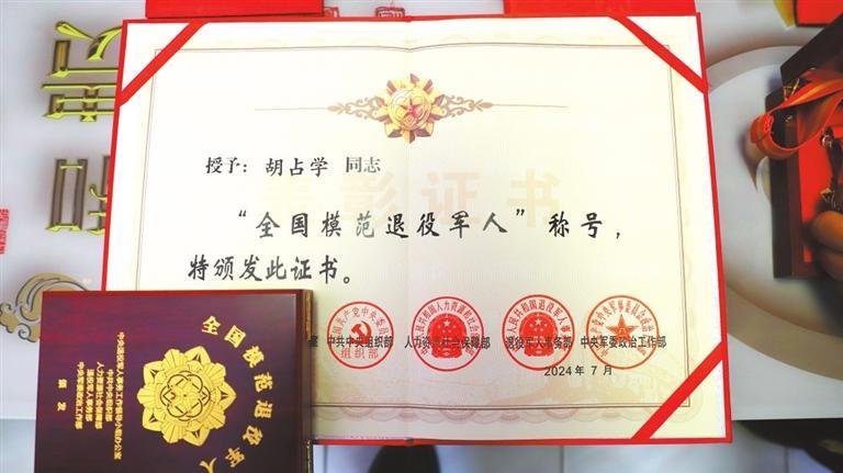 今年8月,胡占學(xué)被人力資源和社會保障部、中共中央組織部、退役軍人事務(wù)部、中央軍委政治工作部等軍地相關(guān)部門聯(lián)合授予“全國模范退役軍人”榮譽(yù)稱號,這是對退役軍人的最高榮譽(yù)和最大褒獎。