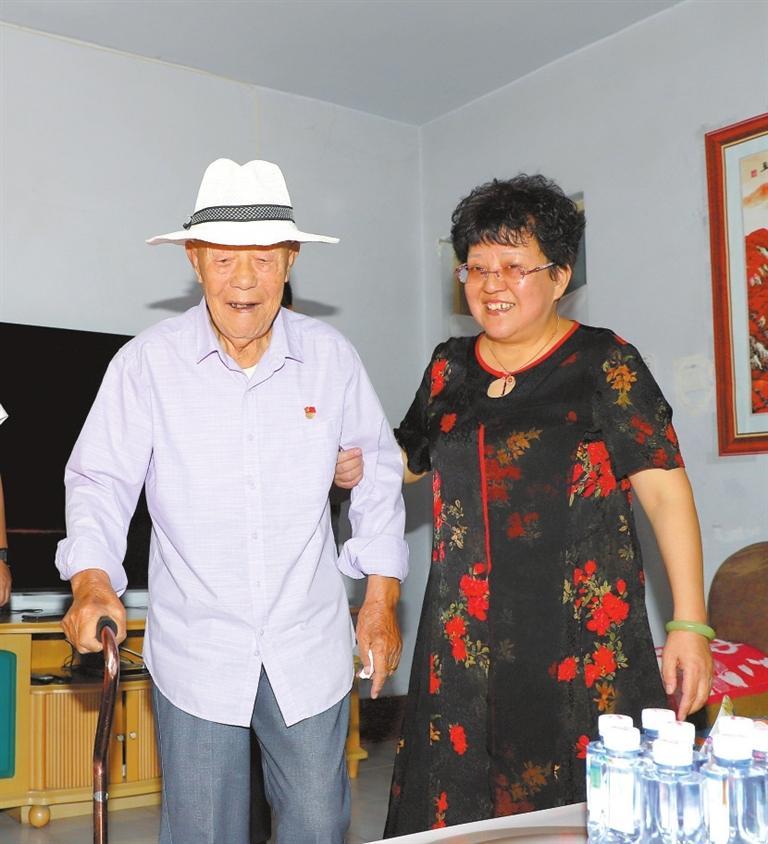 見到94歲的胡占學(xué)時,他正在小女兒胡英敏的攙扶下在屋里行走,盡管步履蹣跚,但依舊神采奕奕。