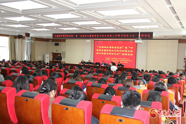18日下午,由國家圖書館(國家古籍保護中心)主辦,甘肅省圖書館(甘肅省古籍保護中心)與西北民族大學聯(lián)合承辦的“古籍保護課程進校園”活動暨“甘肅省古籍修復技藝傳習點”授牌活動在西北民族大學舉行。