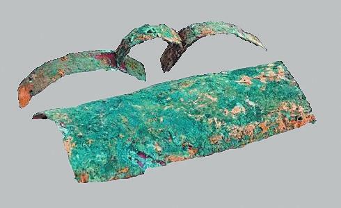 冶金業(yè):辛店文化遺址發(fā)現(xiàn)了一定數(shù)量的早期青銅制品。其中在蓮花臺遺址瓦渣咀發(fā)現(xiàn)青銅刀2件、錐2件、扣3件。其中一件青銅刀刀身扁薄,凹背弧刃,長殘4.5厘米、寬1.5厘米;青銅錐錐身挺直,橫剖面呈方形,其中一件殘長5.2厘米;青銅扣球面或凸面,扣內(nèi)有脊,脊的橫剖面作圓形或方形,直徑一般在1.4厘米—1.6厘米之間。在黑頭咀發(fā)現(xiàn)1件銅刀和1件銅匕,其中銅刀保存完整,刀身向刃部彎曲,刀尖往上翹,柄部有一凸棱,長15厘米、寬2.7厘米。張家咀遺址發(fā)現(xiàn)1件青銅器殘片,系為銅容器口腹部殘片,侈口,弧壁,口沿厚0.4厘米。青銅矛一件,矛身略呈三角形,前鋒已殘,銎作長方形,殘長3厘米、銎長1.8厘米、寬0.7厘米。發(fā)現(xiàn)銅渣2塊,經(jīng)鑒定確認銅渣為冶煉青銅爐內(nèi)壁殘塊,附在冶煉爐內(nèi)的銅渣長6.5厘米、寬3.5厘米、厚1.1厘米。經(jīng)過巖相、光譜分析,銅渣是含有銅、錫、鉛的青銅金屬合金,反映出辛店文化不僅存在青銅器,并且已經(jīng)掌握了冶金技術(shù)。